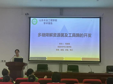 2024年6月27日,我院程媛媛副教授在淄博校区理工西楼B103为我院师生作了题为“多糖降解资源菌及工具酶的开发”的学术报告。
