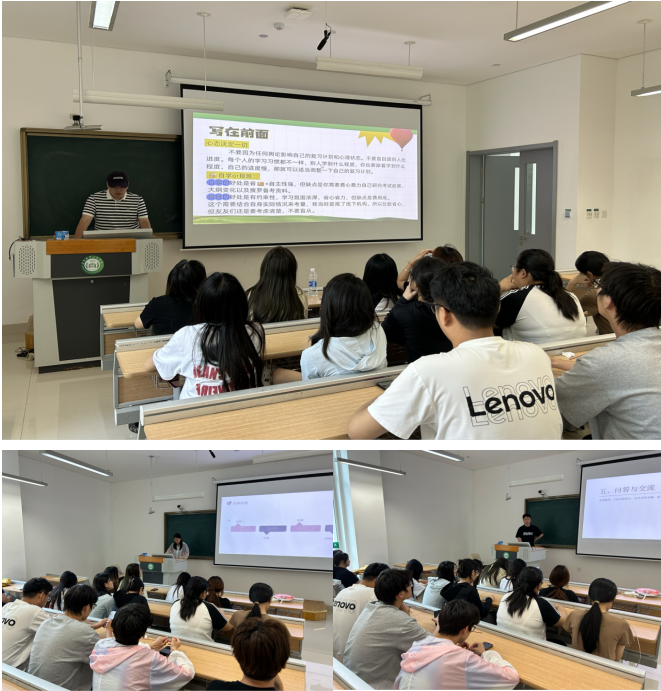 交流会上,22级学长学姐们结合自身专升本及就业经历,从多个角度进行了分享。22级学长崔志远(现考入山东管理学院)、22级学姐边凯玥(现考入bat365正版唯一官网)、22级学长高鹏(现考入bat365正版唯一官网)详细介绍了专升本考试的准备技巧和每个学科的学习技巧、时间管理方法以及对校荐生和公办生名额的解释。