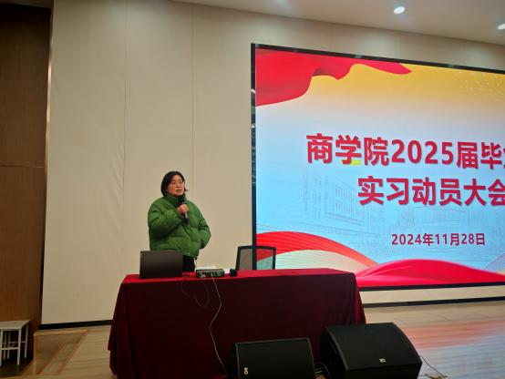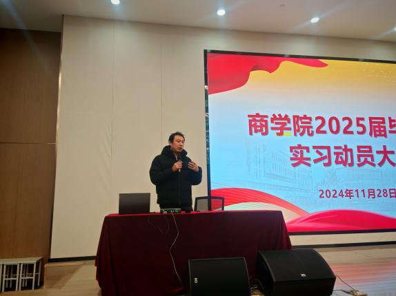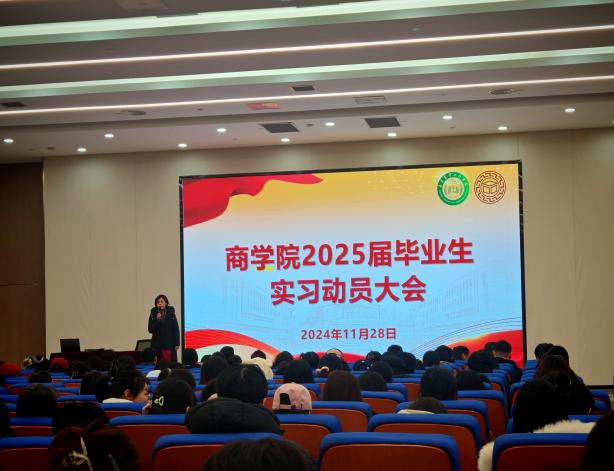 11月28日,商学院2025届毕业生实习动员大会在文法东楼A104报告厅召开。学院领导、教师与全体2025届毕业生参加大会,会议由党总支副书记王世辉主持。