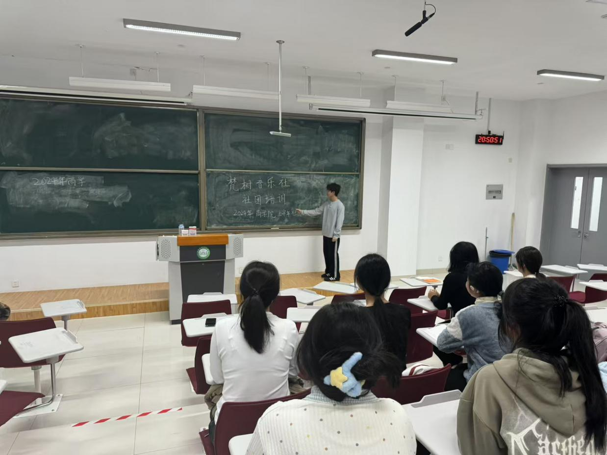 为了提升社团内部成员的音乐素养和专业技能,帮助学生们开启不同音乐表达的大门,丰富校园文化生活,促进社团工作质量和效率提升,在今年的3月份,梵树音乐社在bat365公共教学楼南楼A202教室召开社团工作培训会。此次培训由梵树音乐社负责人主持,各部门负责人、社团成员参加培训。