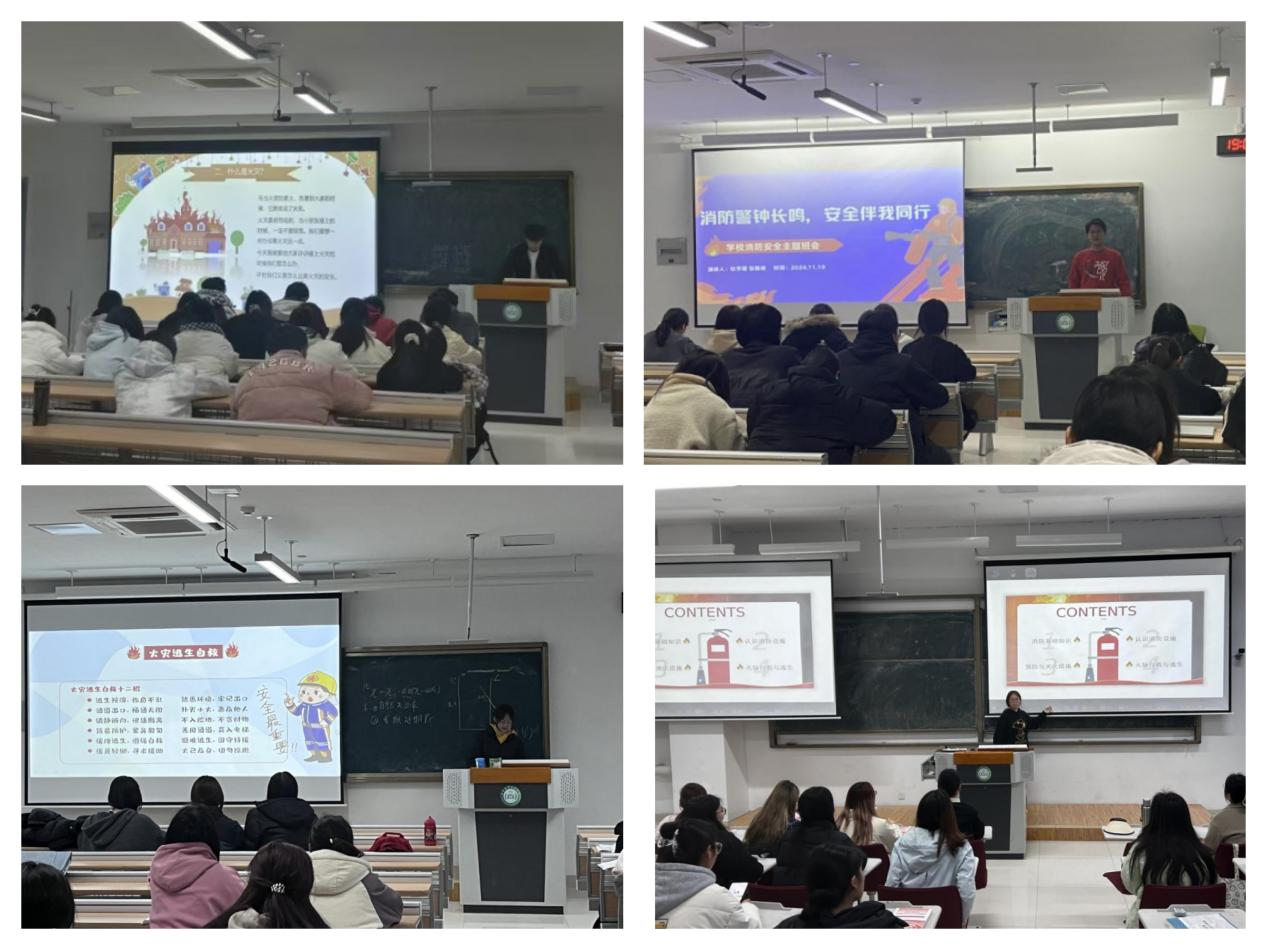 学院于11月18日至20日开展了以“消防警钟长鸣,安全伴我同行”为主题的班会活动。各班班长和团支书化身消防“讲解员”,通过精心制作的PPT,图文并茂地分析火灾案例,讲解灭火器的使用方法、火灾逃生技巧等实用消防知识。同学们认真聆听,积极互动,在浓厚的学习氛围中共同提高消防安全意识。