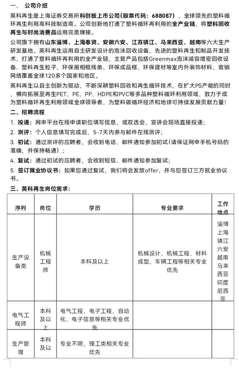 就业职通车|商学院2025届毕业生“寒假促就业暖心行动” 英科再生2025届校园招聘简章