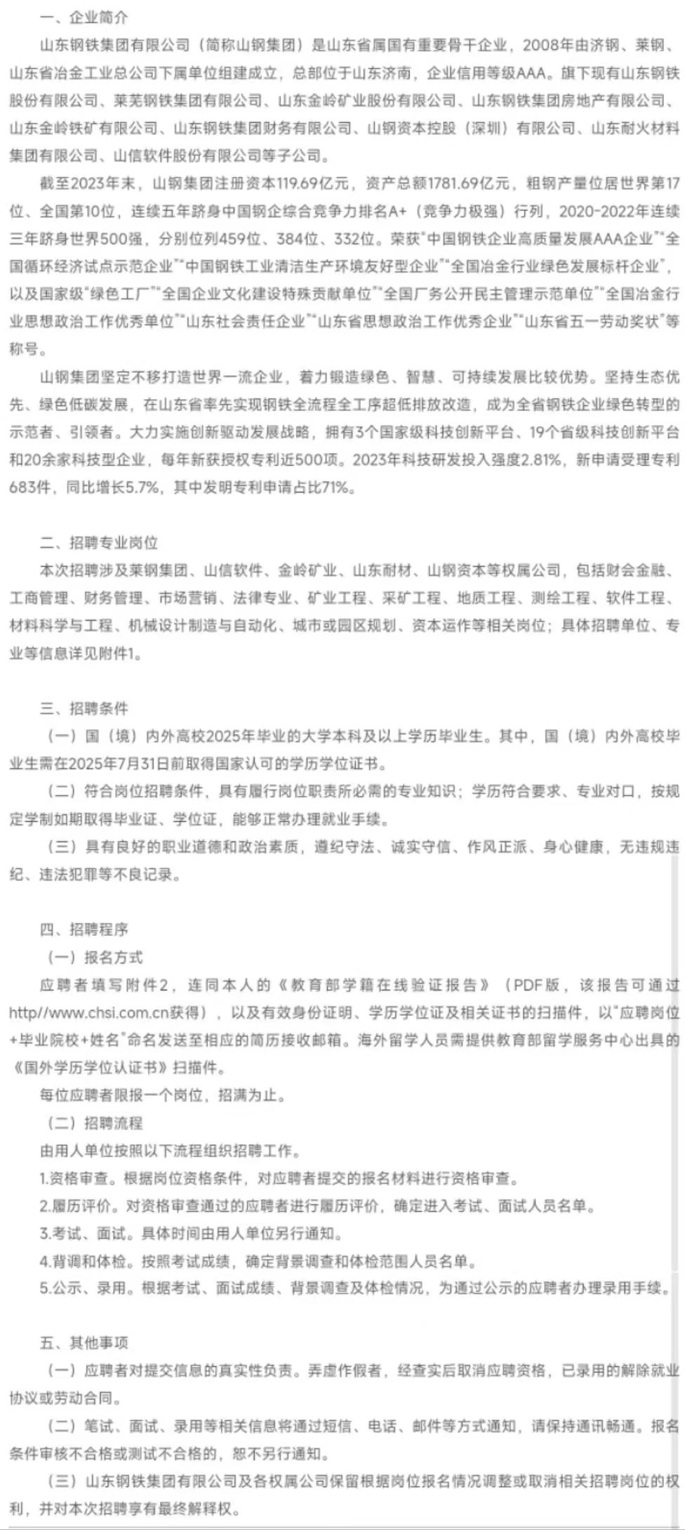 就业职通车|商学院2025届毕业生“寒假促就业暖心行动” 山东钢铁集团有限公司2025届高校毕业生招聘公告 bat365正版唯一官网商学院 2025年02月15日 16:21 山东