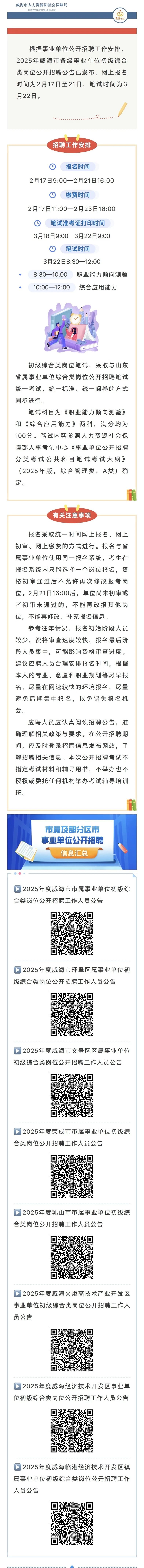 就业职通车|商学院2025届毕业生 2025年度威海市事业单位初级综合类岗位公开招聘公告