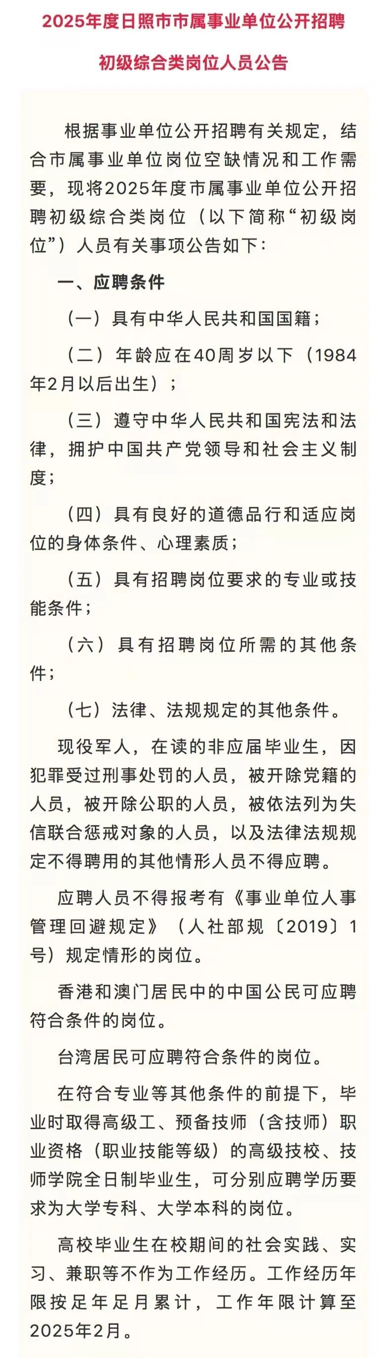 就业职通车| 商学院2025届毕业生2025年度日照市市属事业单位公开招聘初级综合类岗位人员公告
