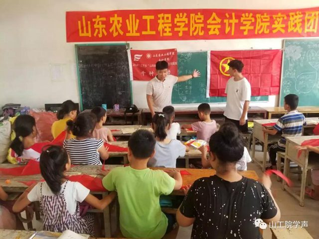 由张春阳老师和黄河老师带领的会计学院爱心实践团参加了团省委举办的“三下乡千村行动”,队员们走进枣庄市齐村镇敬老院看望孤寡老人,他们把牛奶、油、香蕉等食品送到老人受伤,并陪老人聊天、给老人打扫卫生;走进齐村镇孟庄中良村小学开展支教活动,给当地留守儿童认真讲课,陪他们做游戏,给他们温馨的陪伴,枣庄市中区团委对此次活动进行了实时报道。根据校团委安排,我院组建了5支社会实践团队,分别开展了创新创业实践活动、回访母校活动、服务弱势贫困人口活动。通过本次社会实践活动,在服务社会的同时,锻炼了学生的社会实践能力和团结协作能力,提高了学生的社会责任感。