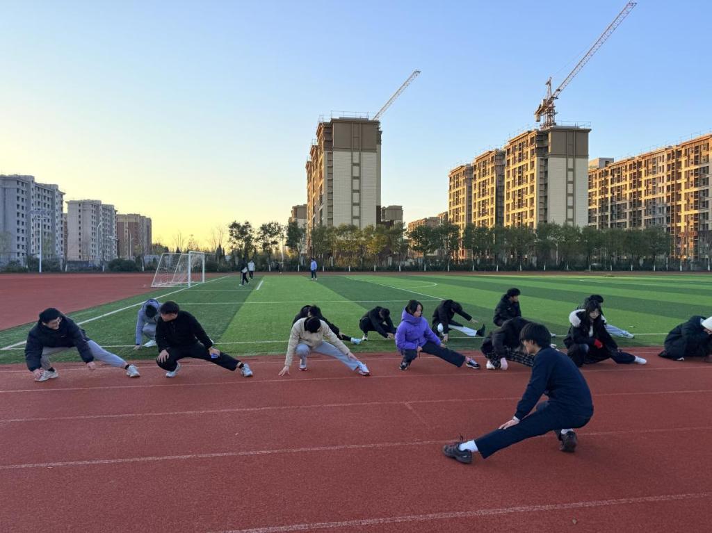 下午四点,西操场上响起了运动员们整齐有力的步伐声。他们开始慢跑热身,用汗水激活每一寸肌肉,为接下来的训练做好充分准备。