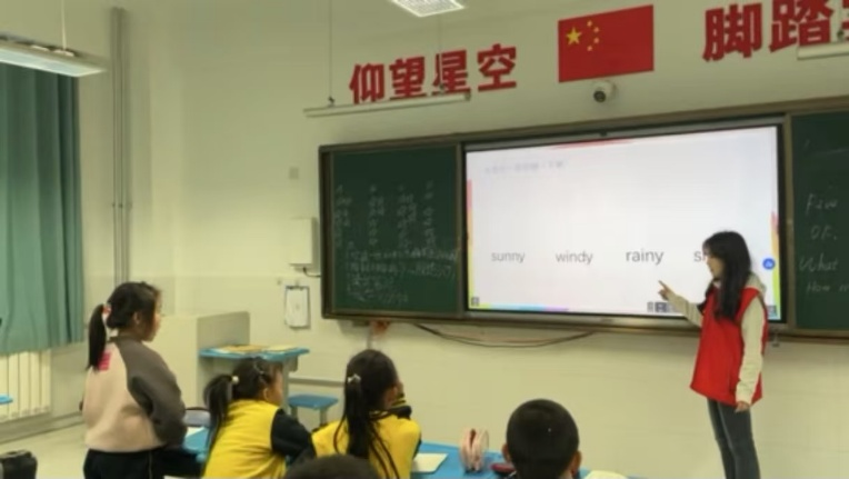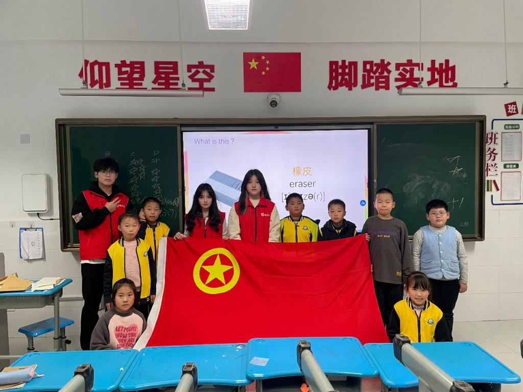 2024年11月29日,bat365商院学子在党的教育方针指引下,在淄博大学城实验小学再度启幕一场以“英语启蒙,启航未来(2)”为主题,充满活力与爱心的英语社团志愿教学活动。商院学子积极响应党的号召,秉持着为党育人、为国育才的教育初心,组建起一支富有责任感与教育热情的教学团队。此次活动不仅提升小学生英语学习水平,更在他们幼小的心灵中播下了爱党爱国、积极向上的种子。