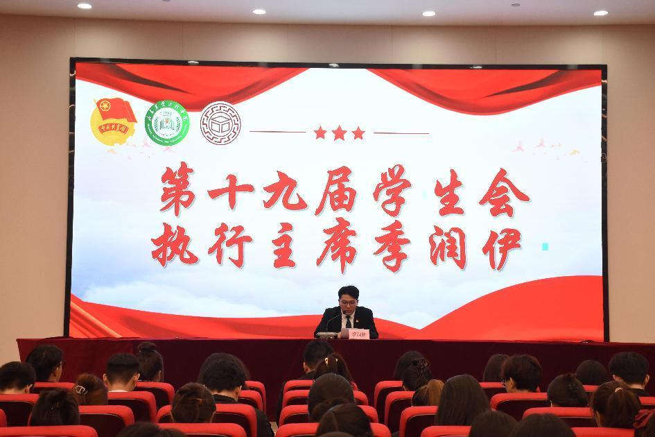 随后,商学院第十九届学生会执行主席季润伊作了《商学院第十九届学生会工作报告》。报告回顾了过去一年学生会在推动校园文化建设、维护学生权益等方面的工作成就,并对新一届学生会提出了殷切期望,期待他们继承和发扬优良传统,为学院的持续发展贡献更多智慧与力量。