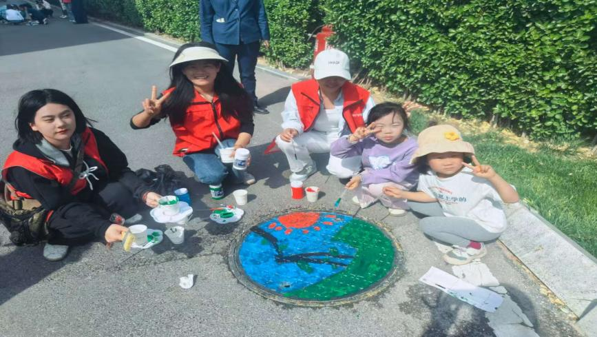 绘画过程中,孩子们热情高涨,充分展现出丰富的想象力。有的孩子以“垃圾分类”为主题,绘制出卡通垃圾桶与可回收物品的互动场景;有的围绕“交通工具”,将飞机、船舶等绘于“盖”上;还有的以“文明城市”为灵感,描绘出市民友好互助、共建美好家园的温馨画面。五颜六色的画笔在孩子们手中飞舞,原本灰扑扑的井盖逐渐被赋予生命,变成一幅幅充满童趣的艺术作品。