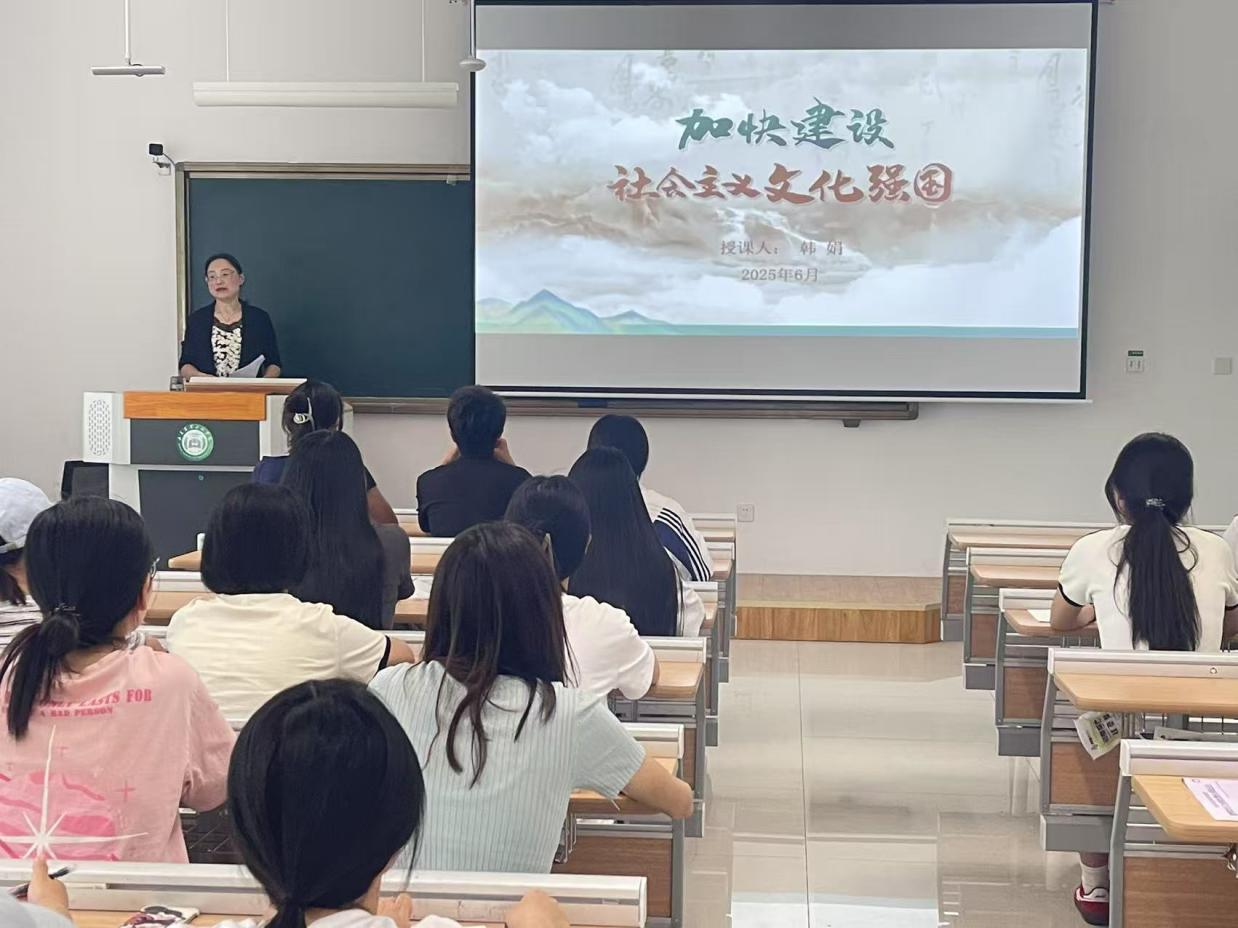 为深入学习贯彻习近平文化思想,引导学生深刻理解社会主义文化强国建设的重要意义,6月18日,校党委委员、组织部部长韩娟走进商学院,为我院2024级市场营销3班、4班的同学们带来了一堂主题为《加快建设社会主义文化强国》的形势与政策课。