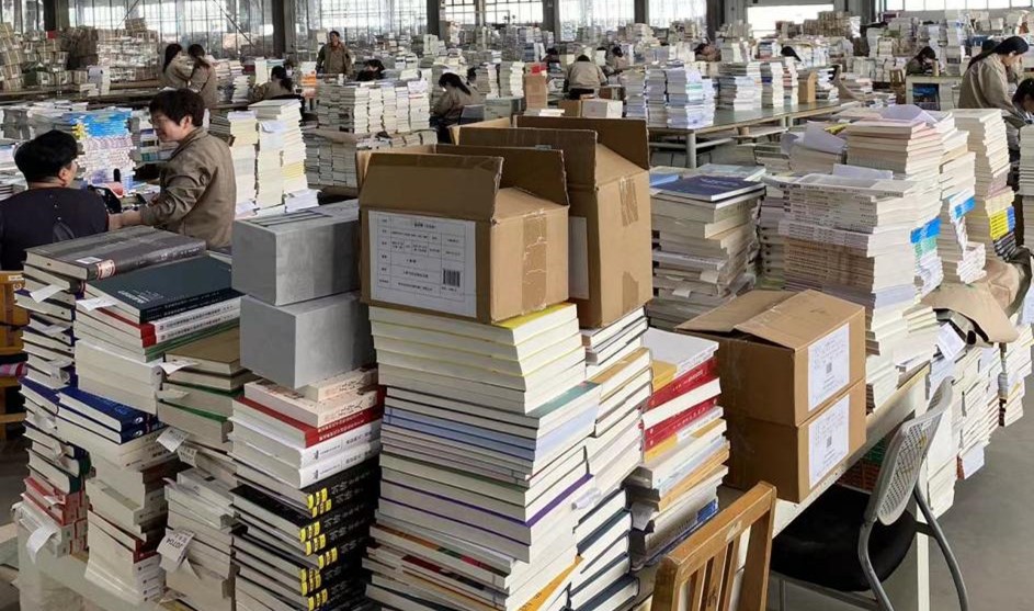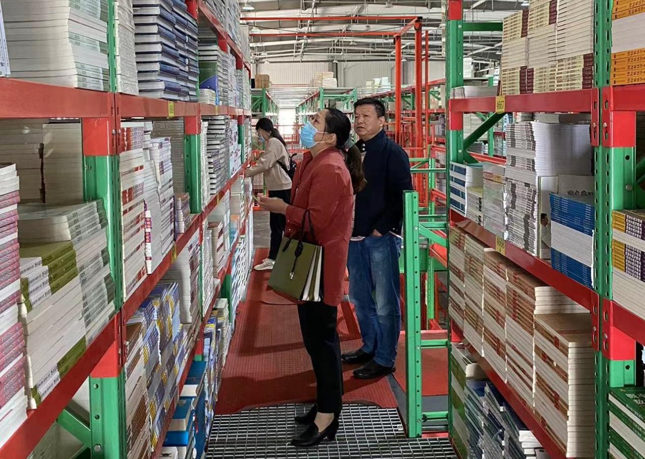 人天书店集团贺照纯经理针对库房的功能和投入使用情况进行了详细介绍,并带领参观了代销库、新书库、特价库等大型仓库,介绍了每个库房的存储数量和配货运行情况。随后,参观了生产车间及从事数据加工的办公区域,深入了解现场工作人员扫书、分拣、加工、打包以及每一项数据加工的工作细节。