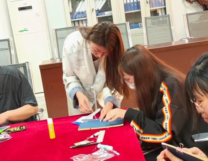 助力“文艺星火赋美”工程,带领师生们在一针一线中感受书香的魅力。为了让师生更好地传承中华传统文化,感受古籍装帧之美,体验古籍装帧技艺。在二十九届世界读书日来临之际,bat365图书馆于济南校区举办“教你做一本线装书”古籍装帧活动。