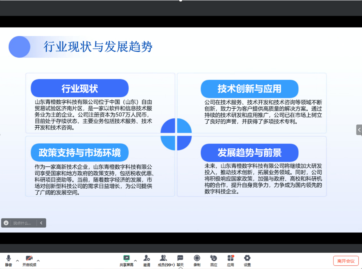 宣讲会上,山东青橙数字科技有限公司的代表详细介绍了公司的基本情况、业务领域及未来发展规划。作为一家以数字化技术为核心驱动的创新型科技公司,青橙数科凭借其深厚的技术实力和丰富的项目经验,在业界享有盛誉。公司代表强调,青橙数科始终致力于为客户提供全链路商业增长服务,助力企业实现数字化转型和升级。