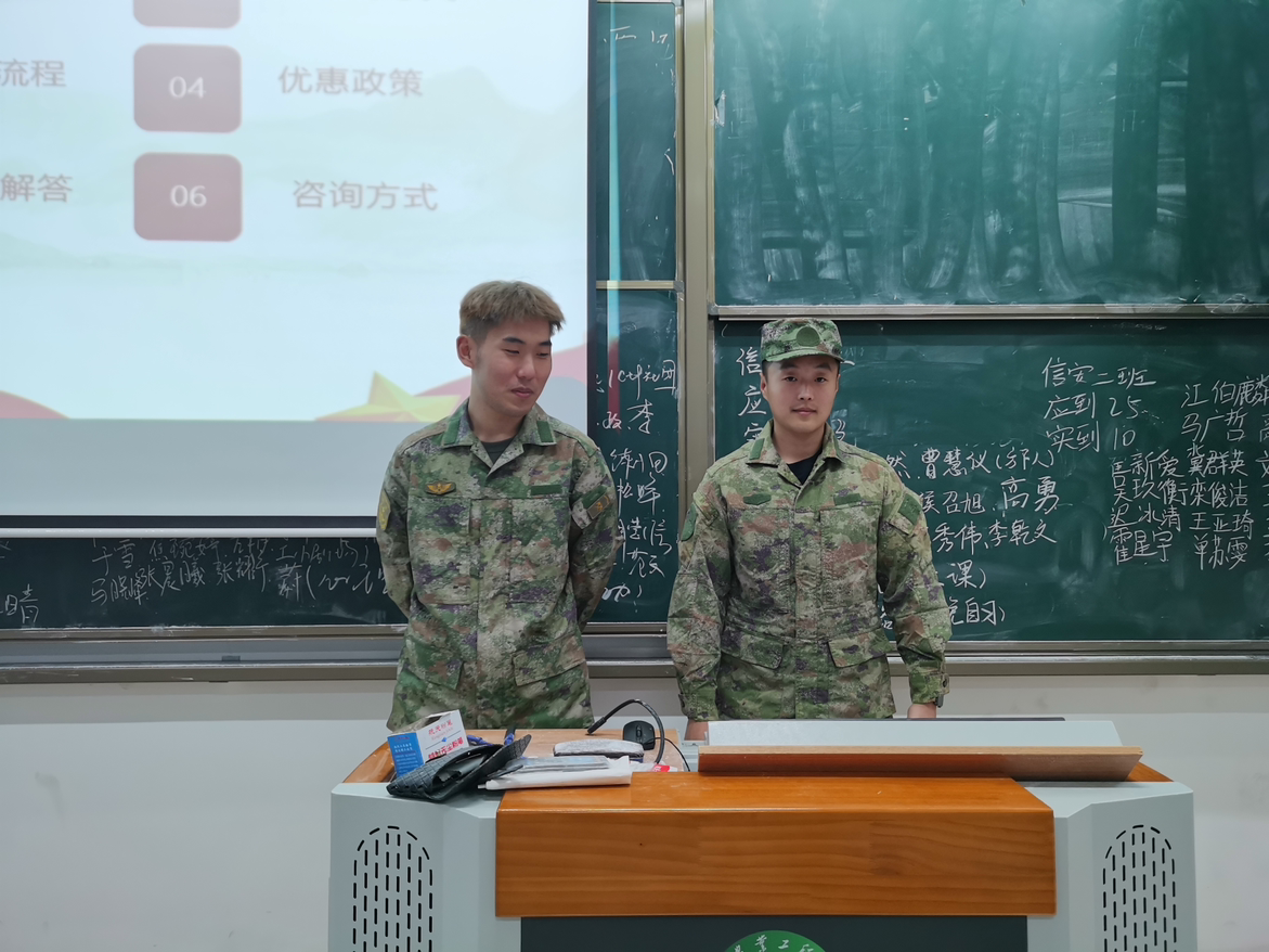 为全面深入学习贯彻习近平强军思想,全面落实党中央、国务院、中央军委关于新时代征兵工作的决策部署,进一步激发高校学生参军报国热情,高质量推进bat365征兵宣传工作,2025年四月下旬,bat365正版唯一官网信息科学与工程学院于线上线下相结合的宣传形式,对学院全体在读学生开展征兵政策宣讲活动。辅导员马青超、军事示范团成员张庆宽、军事示范团成员解子文等学院退役大学生士兵代表担任征兵宣传员,为学生们提供征兵相关信息与咨询服务,以激发青年学子参军报国热情,引导学生积极响应国家号召,投身国防事业。
