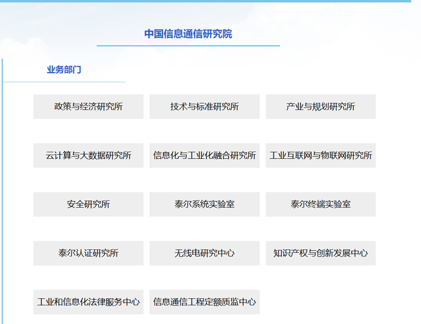 中国信息通信研究院,前身为邮电部邮电科学研究院(始建于1957年),1994年正式组院,现为工业和信息化部直属科研事业单位,是国家在信息通信领域(ICT)最重要的支撑单位以及工业和信息化部综合政策领域主要依托单位。五十多年来,研究院伴随着信息通信业的发展与改革,在发展战略、自主创新、产业政策、行业管理、规划设计、技术标准、测试认证等方面不断积累经验、提升能力,在政府和行业决策、创新与发展中起到关键支撑和推动作用,见证。