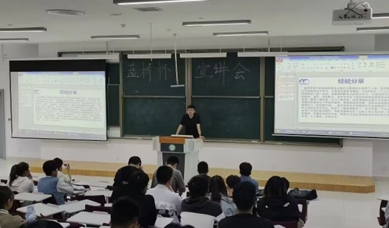 第二部分是由获得第十四届蓝桥杯国赛二等奖的纪帆学长进行大赛经验分享和交流。纪帆学长讲道:“备赛期间可以多学习C语言、超声波以及数电模电知识,多刷省赛题目,学习写代码的逻辑思维和理论框架。”同时学长还为大家分享了相关学习资料,也提供了详细的备赛方略,如寻找往年真题以及讲解视频等。