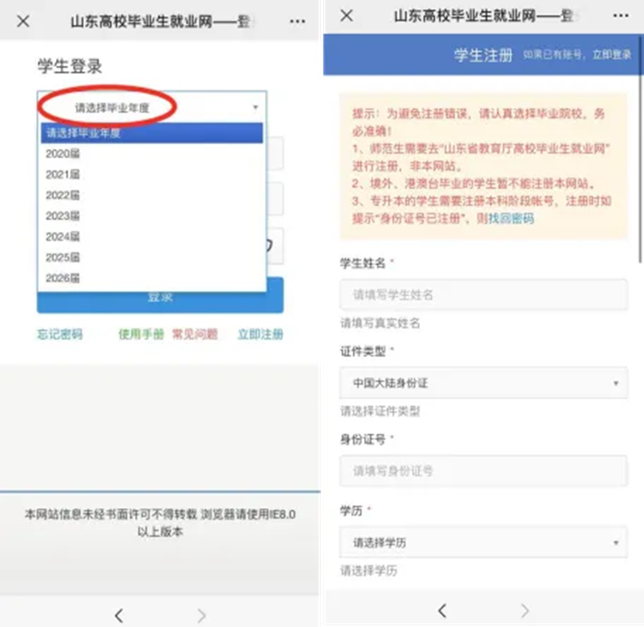 3.进入学生登录页面,已注册过的学生填写信息登录即可;未注册过的学生先进行注册,进入注册页面
