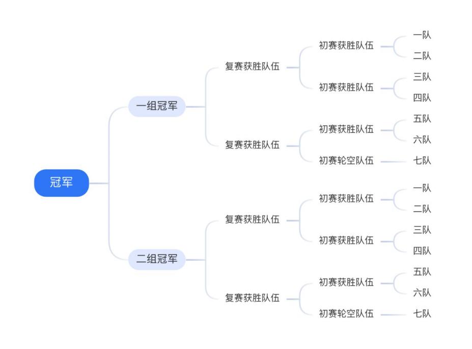 抽签决定双方队伍和出场顺序,初赛决出八支队伍晋级,复赛决出四支队伍晋级,半决赛决出两支队伍,决赛决出冠亚军。