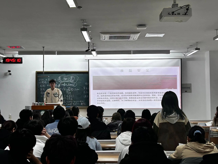 在宣讲会上,实践外联部的志愿者们进行教育宣讲,他们从日常生活中容易忽视的安全问题出发,包括国家安全、食品安全与生活安全、人身安全与防范意识、网络安全等方面的内容,并结合案例进行了深入讲解和分析,向同学们详细讲解了校园安全风险和自我防范的重要性。
