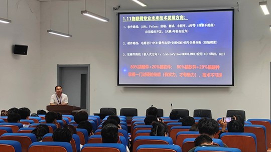 袁魁先生在本次讲座以“AIOT时代,嵌入式技术的机遇与挑战”为主题,首先介绍了AIOT时代,嵌入式技术的机遇与挑战的基本概念和原理,并详细阐述了AIOT技术的发展背景和前景。袁魁先生的讲解于实际生活结合在一起,让在场学生们对嵌入式技术有了更为深刻的认识。
