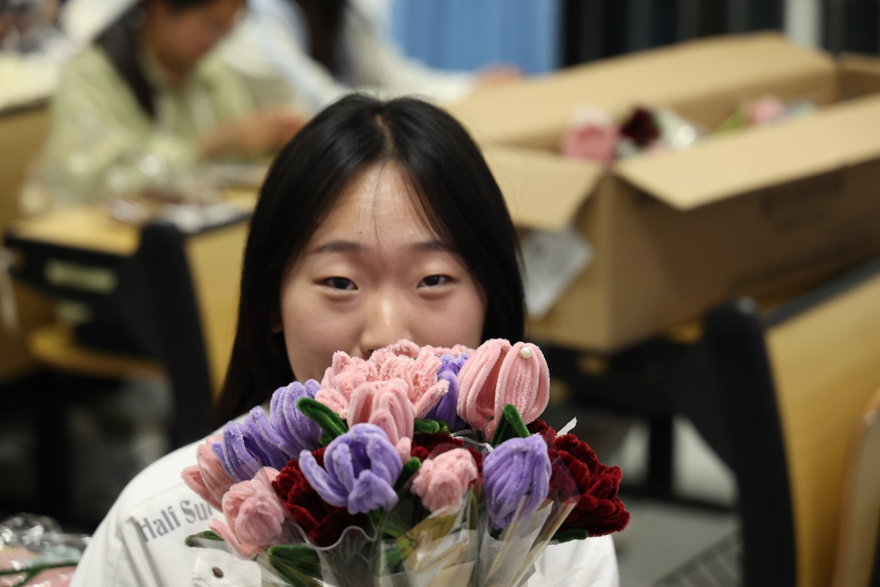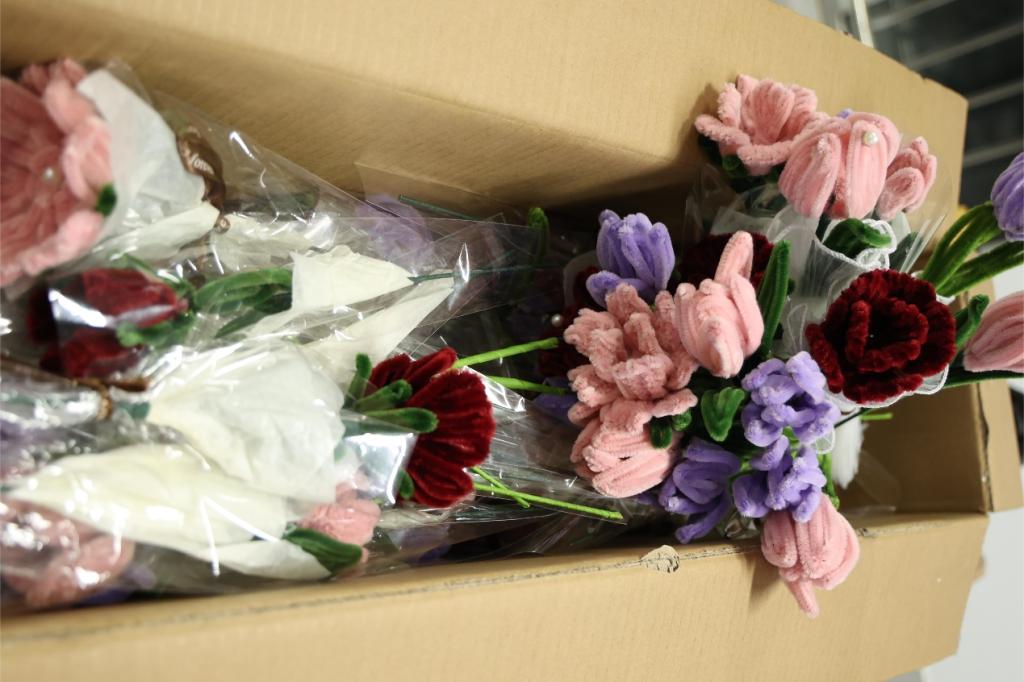 志愿者制作出各色各样的作品,包括寓意母爱的康乃馨、代表希望和阳光的向日葵,以及象征典雅高贵的郁金香等。每一束精美的花束都有其独特的意义,每一束精美的花束都是对母亲的深情告白,承载着制作者对母亲的深深祝福和感激之情。