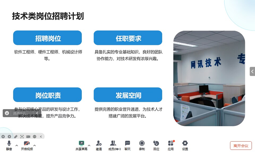 为了让参会学生更加深入地了解公司的日常工作,济南新导科技信息有限公司还准备了一系列的线上体验活动。通过分享屏幕,展示了公司最新的科技产品、项目案例及研发环境,让学生们在线上也能充分感受到新导科技的创新精神和技术实力。