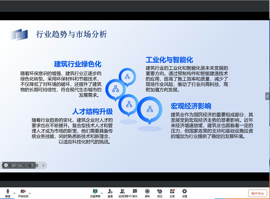 为了提高双选会的效果,吉月建筑事先通过在线申请资料进行了仔细筛选,确保与求职者的专业和兴趣相匹配。活动中,求职者有机会与公司各部门负责人通过视频会议进行一对一的深入交流,双方就岗位需求、职业发展、薪酬福利等议题展开了全面的沟通。
