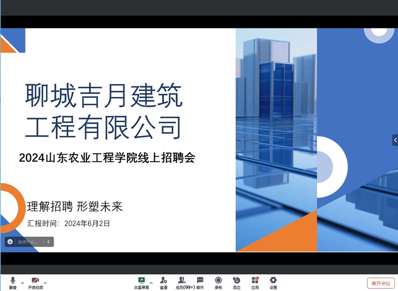 空中双选会通过专业的在线平台进行,信息科学与工程学院全体毕业生参与。活动开始,聊城吉月建筑工程有限公司的人力资源部负责人通过视频向与会者表示热烈欢迎,并简要介绍了公司的历史沿革、发展愿景和企业文化。随后,通过播放公司宣传片,让求职者更直观地了解公司的项目实例、工作环境和团队风貌。