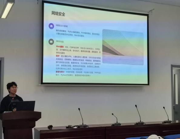 紧接着,23级信安一班的朱熙贤同学以其丰富的参赛经验,为大家详细解读了蓝桥杯竞赛的要求和准备策略。他从编程语言、算法基础和实际案例出发,使同学们对蓝桥杯竞赛有了更为全面的认识。朱同学的讲解既深入又生动,赢得了在场师生的热烈掌声。