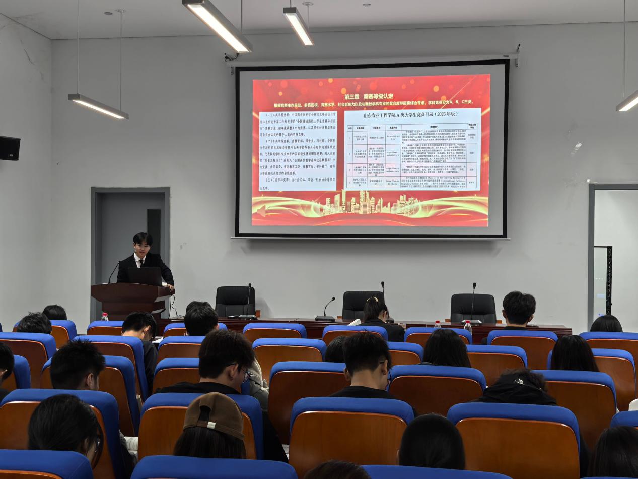 第三部分由学术文化部部长王锦涛讲解,他就学校有关人才培养的总则、组织机构以及职责、竞赛等级认证、ABC类学科竞赛的竞赛名称、主办单位和竞赛简介进行说明,并鼓励信工学子们参加竞赛,努力提升自己,获得成长。实践外联部部长陈漪从bat365正版唯一官网社会管理办法谈起,具体介绍了普通高校毕业生就业服务公告、普通高校学生自主创业公告、学生勤工助学管理暂行办法以及考核管理,消除了同学们对自主创业的空白认知。