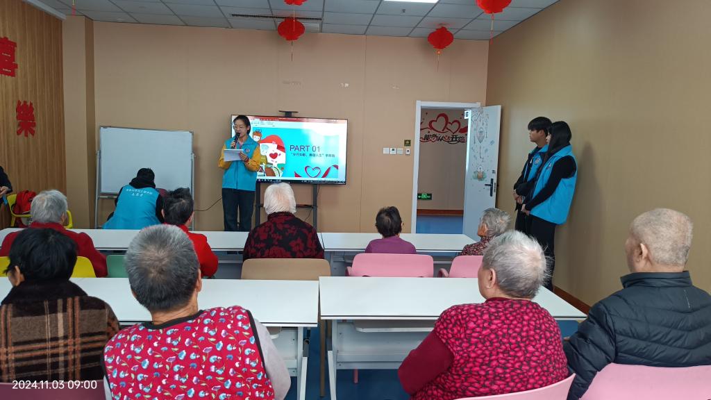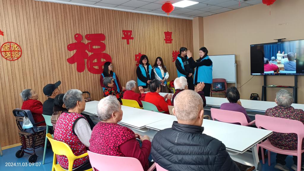 在接下来的活动时间,志愿者们与老人们携手共同开展一系的有意义的活动。在第一项“岁月如歌,舞动人生”手势舞活动中,志愿者们依循预先备好的教程,借助分解教学、示范模仿及集体练习等形式,悉心且逐步地展开教授。随后,进入“艺术疗愈”手工艺作坊环节,老人们与志愿者们进行折纸创作,老人们的创造潜能与兴趣爱好得以充分激发。最后“音乐时光”合唱与才艺表演,有效拉近彼此间的距离,增进了志愿者们彼此间的情谊与信任,也促进了与老年人之间的情感交流。