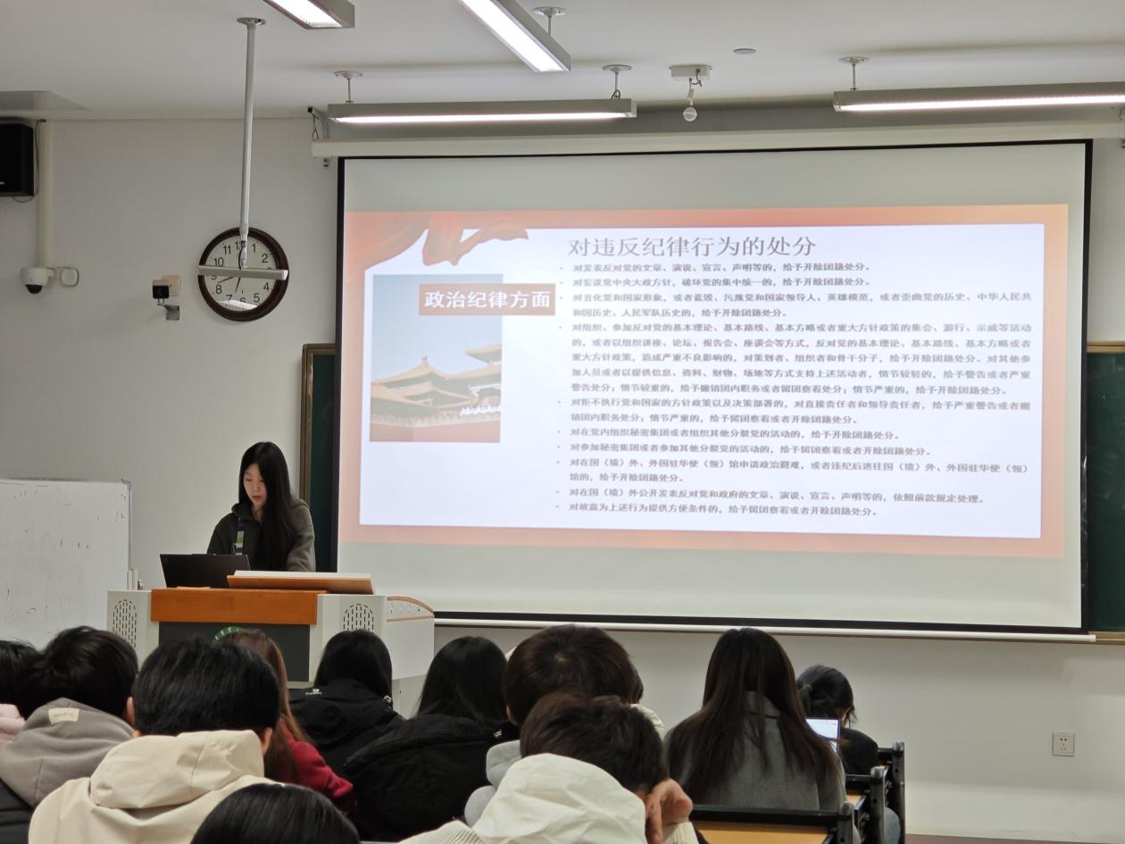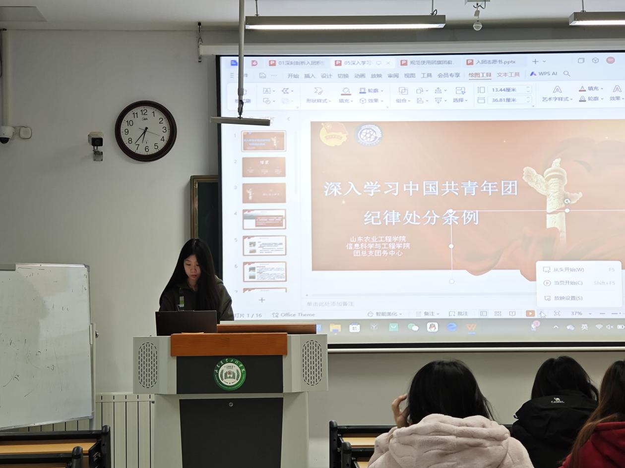 近日,信息科学与工程学院团总支团务中心组织开展了一场以深入学习《中国共产主义青年团纪律处分条例》为主题的团课活动。