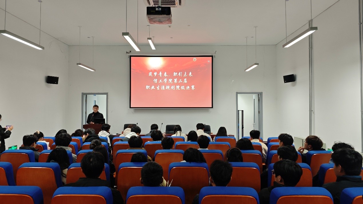 为激发同学们对未来职业生涯的规划,提升自我认知和就业竞争力,搭建交流学习平台,信息科学与工程学院于2024年11月18日在理工东楼A101举办了“筑梦青春,职引未来”第二届职业生涯规划院级决赛。评委团由学院辅导员李洁璐、马青超,以及学生会各个部长等组成。