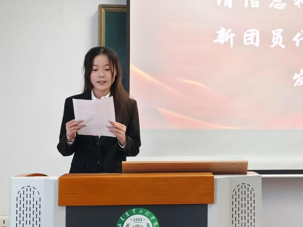 随后,由新团员代表胡晨曦和优秀团员王雅琦发言,表示在今后的学习和生活中努力奋斗,不负团组织的信任和期望。号召在共青团旗帜下承担责任,不断成长,为实现中华民族伟大复兴的中国梦贡献自己的力量。