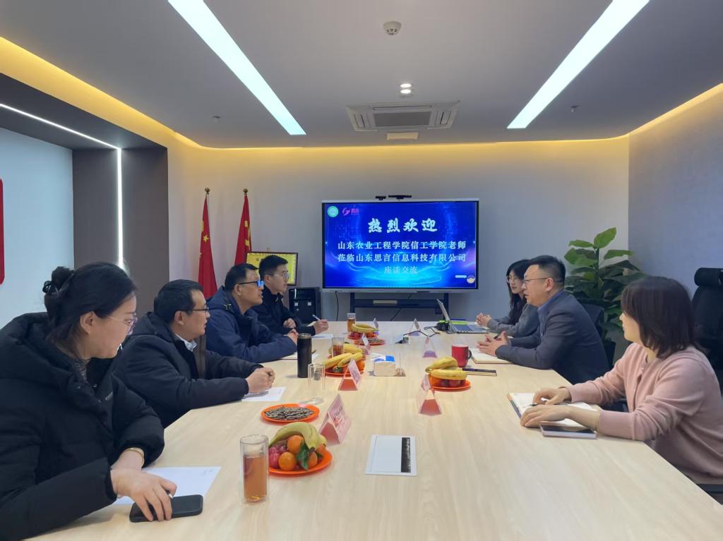 下午,走访团队前往济南市历城区,与1998级优秀校友、山东思言科技有限公司总经理张忠全进行交流。张忠全对母校老师的到来表示热烈欢迎。他带领学院老师参观公司环境、实验室等,介绍公司运作模式。随后在公司会议室开展座谈会,张忠全详细介绍了公司的业务领域、独特的企业文化。他表示,母校的教育为自己的职业生涯奠定了坚实基础,在工作中始终秉持着从母校学到的专业知识和奋斗精神。学院领导及老师对其取得的成就表示祝贺,并就学院目前在人才培养方面面临的挑战和机遇与校友进行了交流。最后希望他常回母校,为学弟学妹们分享创业经验和职场心得。