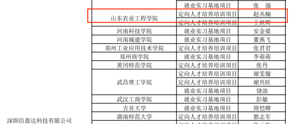 近日,教育部高校学生司发布《教育部高校学生司关于公布第二期供需对接就业育人项目立项名单的通知》(教学司函[2023]6号),我院与深信服科技股份有限公司、济南博赛网络技术有限公司和北京华清远见科技发展有限公司联合申报的就业实习基地项目,与深圳信盈达科技有限公司公司联合申报的定向人才培养培训项目,共4个项目获批立项。