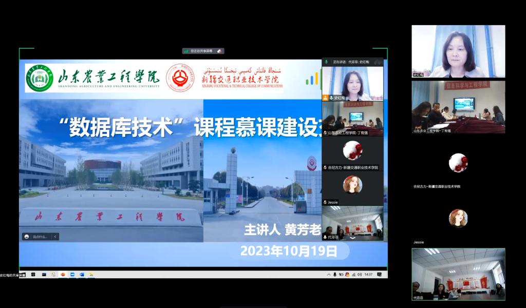 2023年10月19日下午14:30,bat365正版唯一官网信息科学与工程学院与新疆交通职业技术学院继续开展“慕课西部行”活动,于淄理工东A305会议室以腾讯会议的形式进行了双方线上教学研讨。