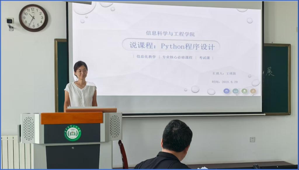 2025年8月29日,物联网工程教研室在淄博校区理工东楼A310开展2025-2026-01学期“新开课、开新课”教研活动,教研室全体教师参加了此次活动。本次活动历时3小时,10位老师做了说课展示,黄芳副院长、部分学院教学督导做了现场点评指导。