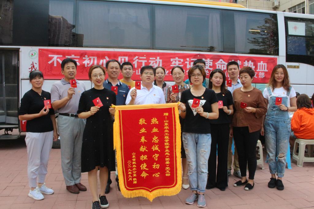 活动现场设在济南校区学生公寓前移动鲜血车站。参加献血活动的支部党员们在献血车前耐心排队,有条不紊的按照血站工作人员的要求填写表格,经过信息登记、量血压、测血型等准备工作,积极踊跃献血。