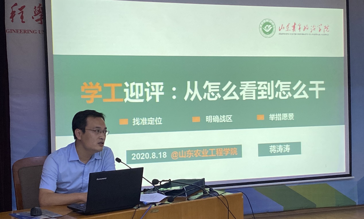 蒋涛涛部长以“学工迎评:从怎么看到怎么干”为主题,通过建立思政工作大格局,构建应用型人才培养体系,学生工作自我定位,以及“四说”育人等方面进行细致讲解,并就学生工作迎评促建要点、重点工作提出宝贵意见和建议。