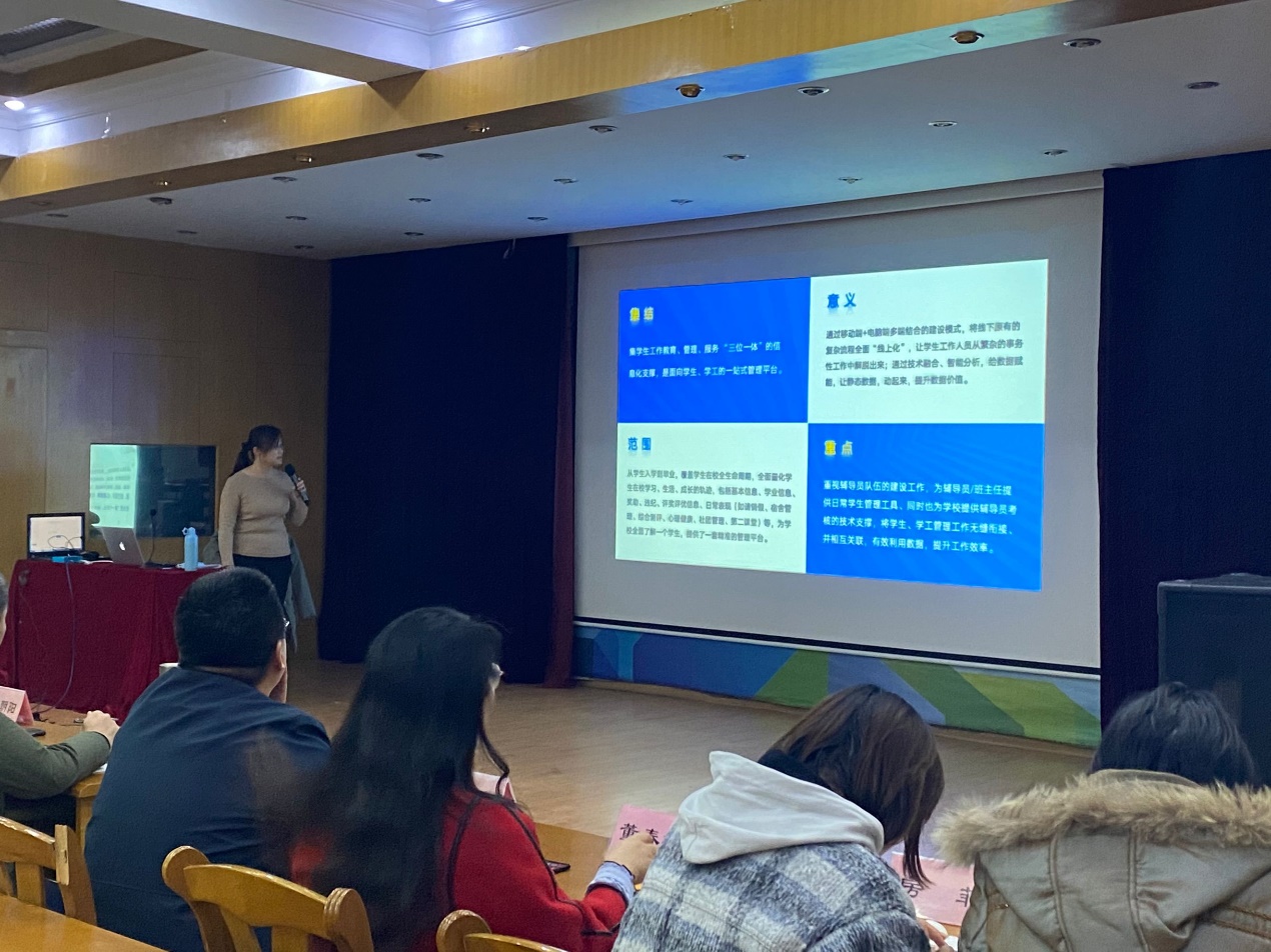 3月4日上午,bat365在济南校区1号教学楼5楼多功能厅举行了学工管理系统培训。各二级学院党总支书记、全体辅导员老师、团委成员、学生工作部成员参加了本次培训。
