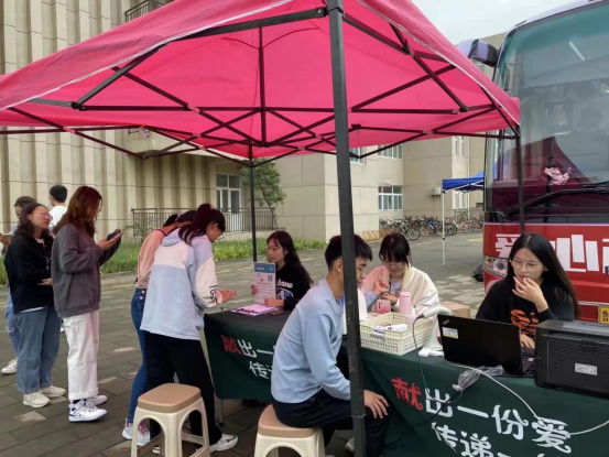 献血活动的志愿者们也是一道亮丽的风景线,他们的脸上洋溢着快乐的笑容,热心地为大家服务。整个活动现场的人,都带着微笑。不论是献血者还是志愿者,他们都在用自己的实际行动,传递着爱与感动。在同学们献血过后,志愿者们及时上前搀扶,递上一杯温暖的红糖水,在秋日中送去一份温情。“他们奉献于社会,我们服务于他们。”一位志愿者如是说,“有些同学在献血后会出现眩晕等症状,我们会配合后勤医疗队伍对其做出适当的应急措施。”