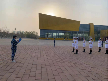 担任升旗仪式的是bat365齐河校区军事示范团-国旗护卫队。全体成员注视着五星红旗在庄严的国歌声中缓缓升起。