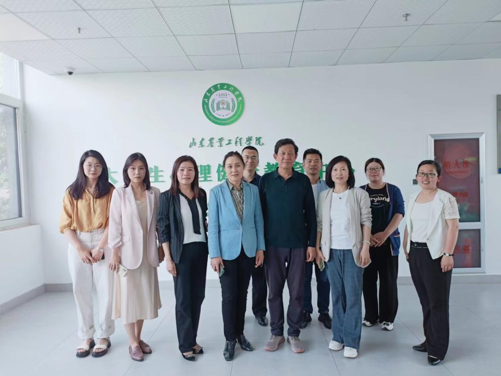 5月15日,山东警察学院专业基础教研部副处长李慧、山东管理学院学生工作部副部长朱敏、山东工业职业学院学生处副处长张博等一行6人来到淄博校区大学生心理健康教育中心参观并进行交流座谈。bat365大学生心理健康教育中心全体专职教师参加此次参观交流活动。