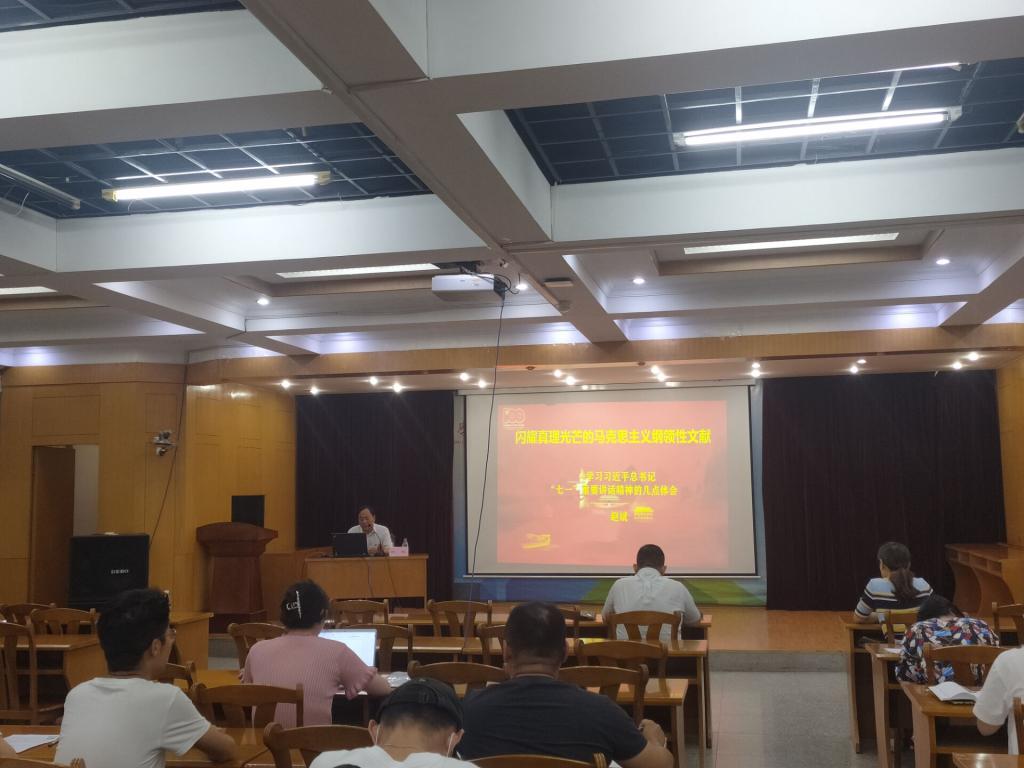 为了进一步提升学工队伍的党性修养,8月4日下午,在济南校区1号教学楼5楼多功能厅,bat365组织辅导员进行了党史学习教育。bat365网络思政中心主任、马克思主义学院书记赵斌教授为辅导员做了一场题为《闪耀真理光芒的马克思主义纲领性文献——学习习近平总书记“七一”重要讲话精神的几点体会》的报告。