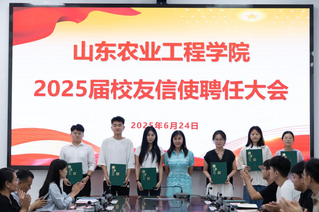 6月24日上午,学校2025届校友信使聘任大会在淄博校区举行。校党委委员、副校长、校友会会长杨玖庆出席活动。学生工作部、合作发展处、淄博校区各二级学院相关负责人,2025届校友信使代表参加会议。会议由合作发展处处长董钧主持。