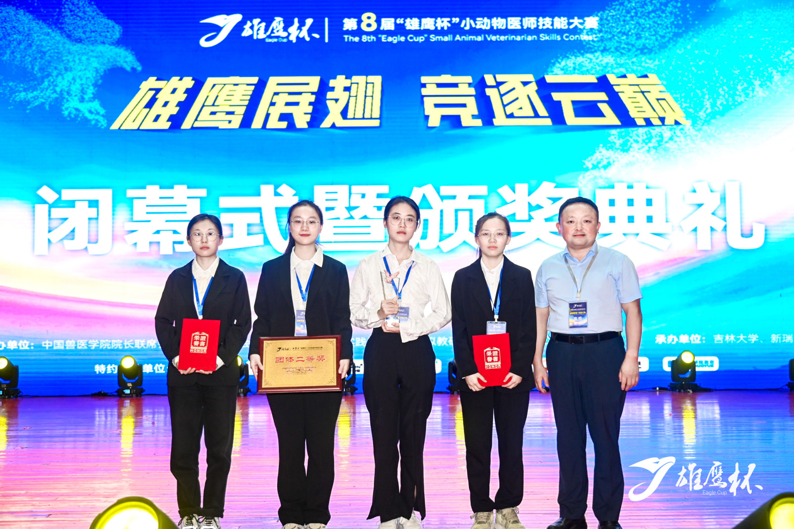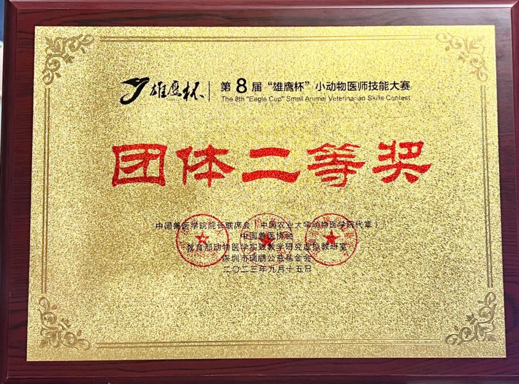 9月14日至15日,第八届“雄鹰杯”小动物医师技能大赛大学生组比赛在吉林大学隆重举行。本届大赛由中国兽医协会、中国兽医学院院长联席会、深圳市瑞鹏公益基金会主办,吉林大学、新瑞鹏宠物医疗集团共同承办,共有来自全国117所高等农林院校的参赛队伍同台竞技。我院首次组队参赛,参赛队员为孔纤、于洋、宋伟、张淑娜,刁有江副院长为领队,现场指导教师陶庆树。