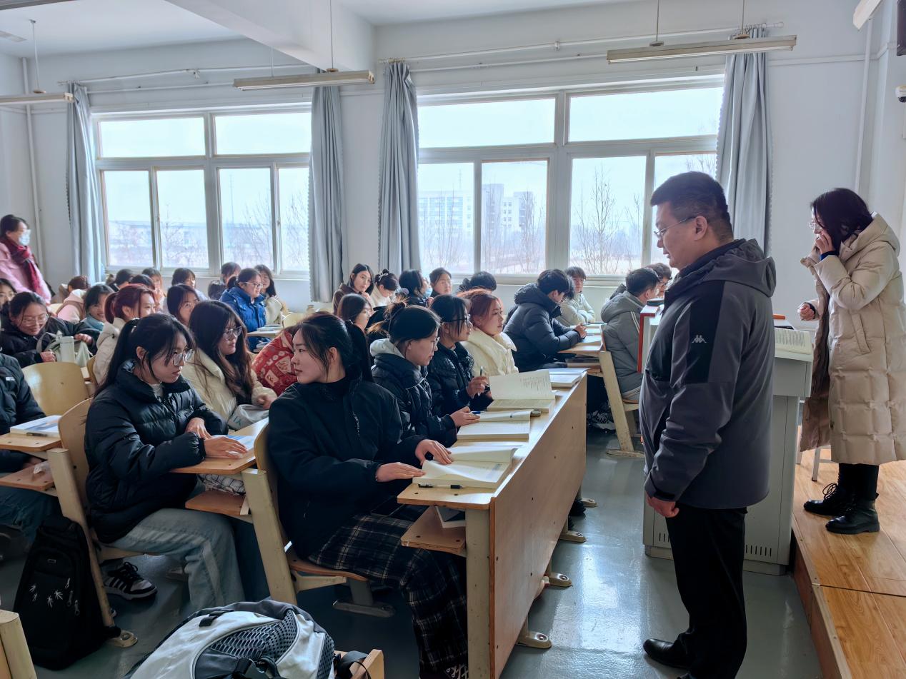 3月4日,新学期正式上课第一天,学院领导、辅导员老师走进课堂,了解学生到课听课等情况。同学们都能够提前10分钟进入教室,课堂整体教学氛围浓厚,老师们授课生动认真,同学们积极互动、精神饱满,充分展现了新学期的良好精神风貌。