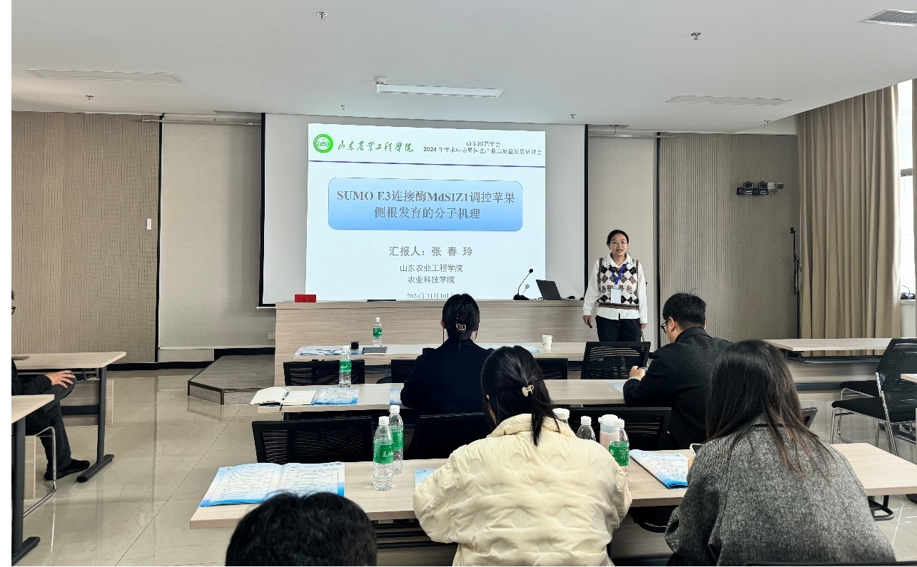 2024年11月9-11日,由山东园艺学会主办、烟台市农业科学院和蓬莱区农业农村局承办的山东园艺学会2024年学术年会暨园艺产业高质量发展研讨会在烟台市蓬莱区隆重举行。我院张春玲博士参加了本次研讨会并在青年学者科技论坛作报告。